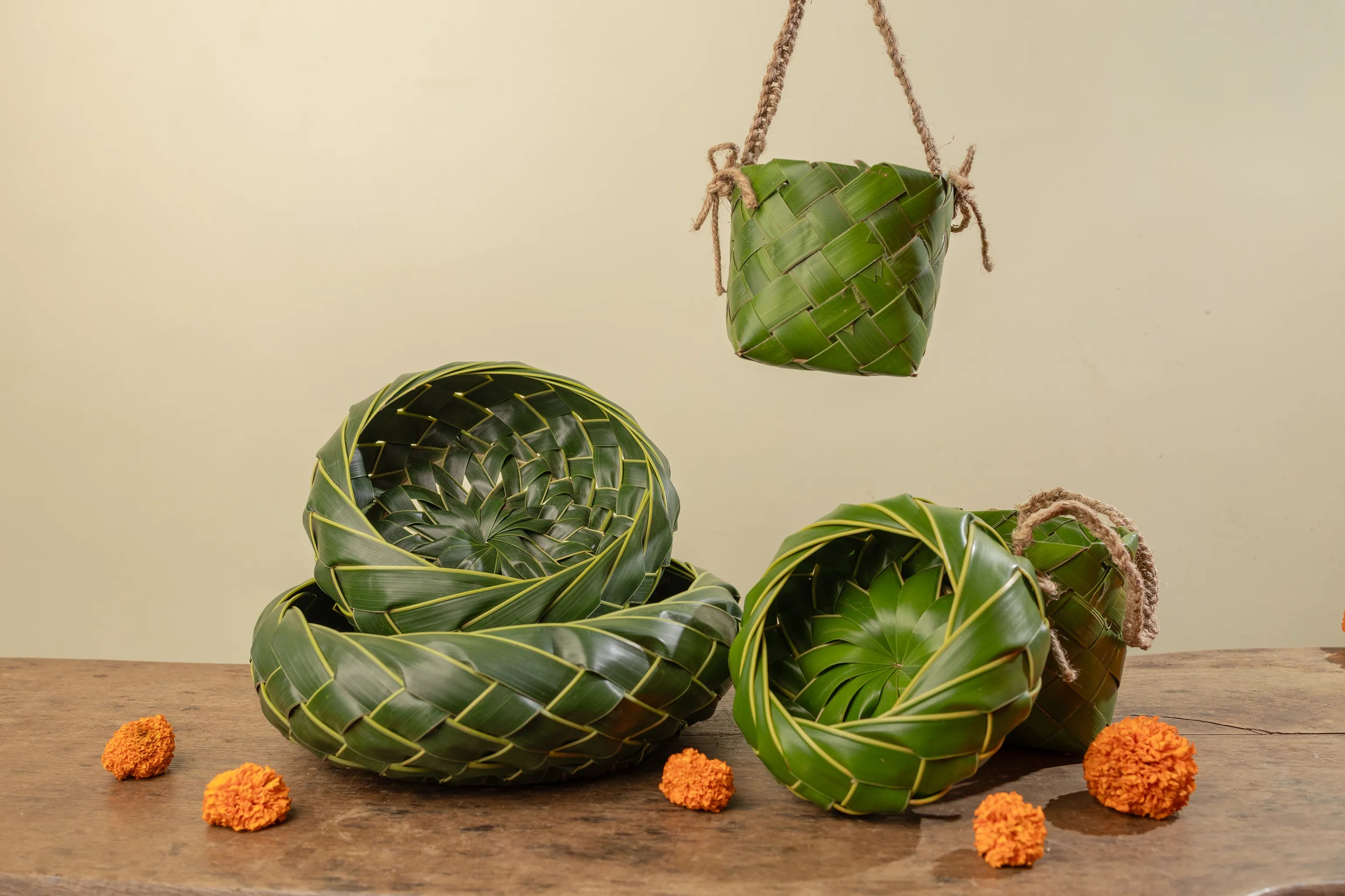 Shop our handwoven leaf baskets - perfect for holding fruits, sweets or filling with festive goodies to make it a perfect gift.